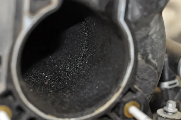 After the engine was mounted on the stand, we started tearing it apart and cleaning it. It was readily apparent the 5.3 had a rough life. After the engine was stripped down to the long block, we pulled the dipstick to see if the engine still had oil in the pan, which it did. It looked to be overfilled and this was our first clue that something was wrong. Next, we removed the drain plug. That is when the fun started. The oil was not overfilled, instead, the engine was filled with water that had accumulated during the thunderstorm season here in Texas.