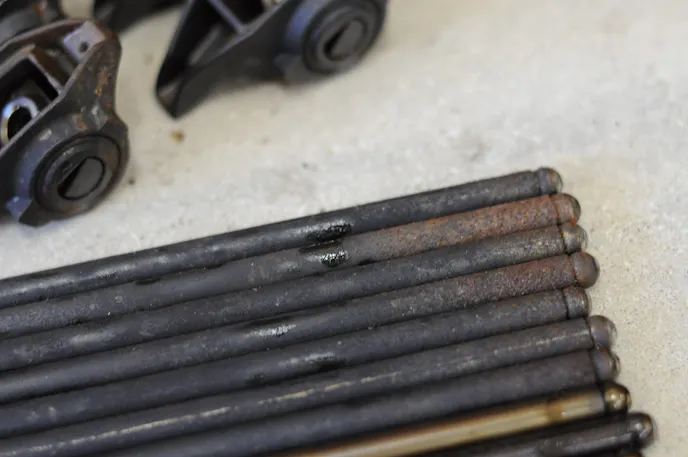 At this point, we decided to yank the valve covers off and take a look at the top of the engine. We removed the rocker arms and pulled the completely rusted pushrods. By now, it was evident that we had some serious problems. We removed the spark plugs — which looked as bad as we expected — and proceeded to turn the balancer by hand. It didn’t budge. Even with a socket and a breaker bar, the engine wouldn’t spin over. It was game over for this little 5.3.