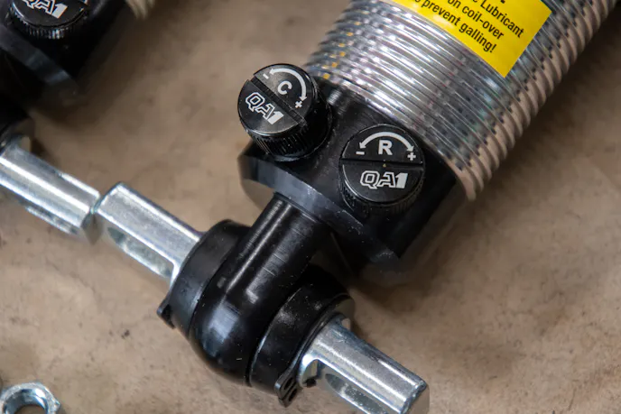 The only thing left to do is set the compression and rebound on the coilovers before taking it to the alignment shop. QA1 recommends 12 to 16 clicks of compression and zero to 4 clicks of rebound for drag racing applications; we set ours for 12 on the compression and zero on the rebound.