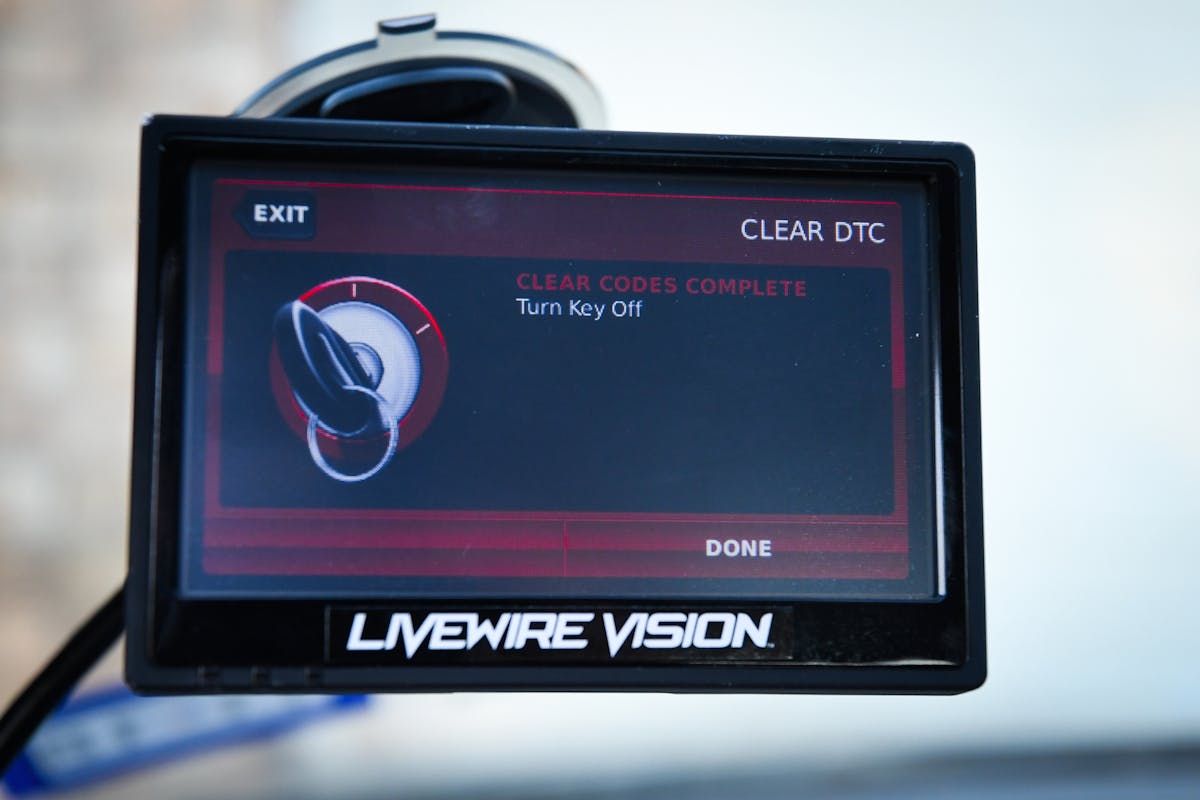 The Livewire Vision works as a diagnostic scanner and allows you to read the engine codes and clear them on the fly.