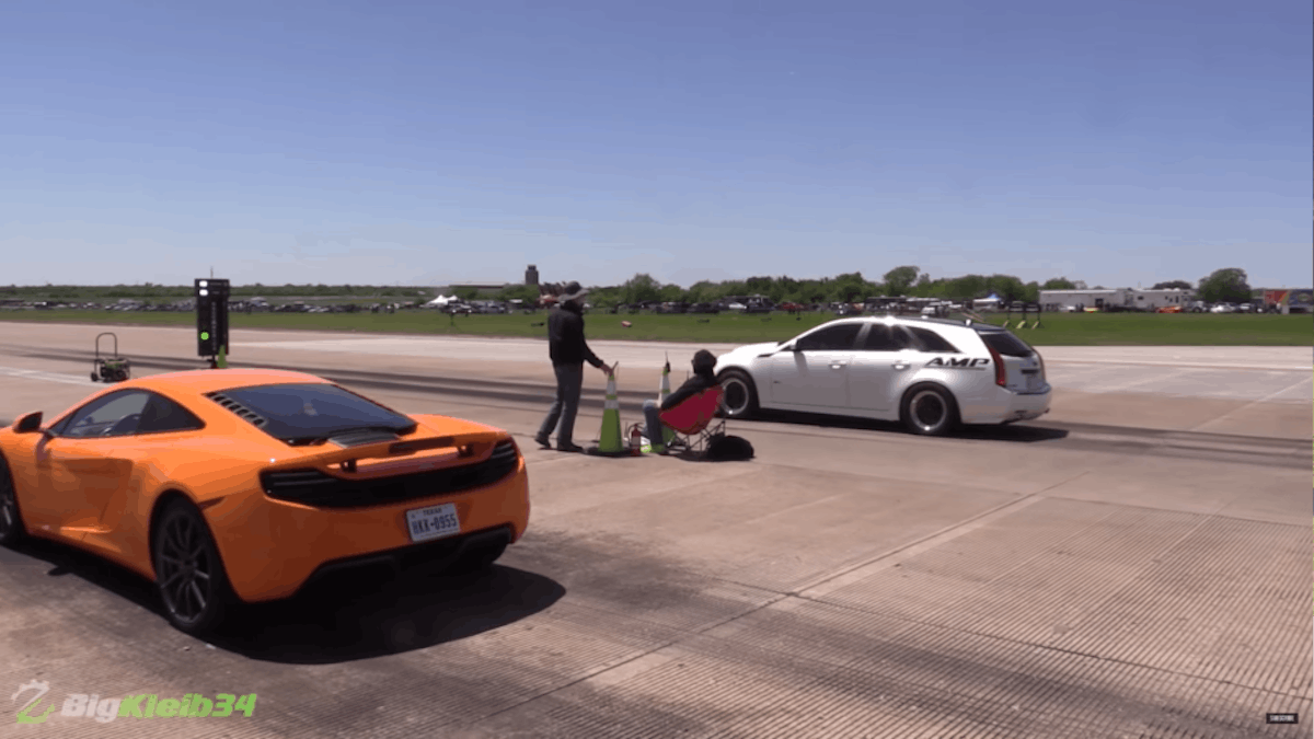 He affirms that the car is subjected to all sorts of racing events; drag racing, quarter- and eighth-mile racing, open road racing, as well as the half-mile event from the video. Clearly, this 4,000 pound, 800 rear-wheel horsepower wagon is putting in the work the owner is looking for. It’s enough to keep up with cars like a Dodge Demon, a modified five-liter Mustang GT and a McLaren MP4-12C!